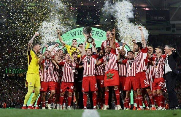Az Olympiacos első görög klubcsapatként nyert nemzetközi trófeát, miután szerdán a harmadik alkalommal kiírt labdarúgó Konferencia-liga athéni döntőjében hosszabbítás után 1-0-ra legyőzte a tavaly is finalista olasz Fiorentinát.