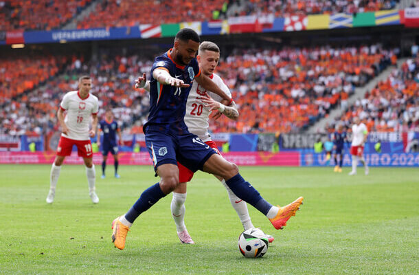 A holland válogatott hátrányból fordítva 2-1-re legyőzte a lengyel csapatot a németországi labdarúgó Európa-bajnokság D csoportjának vasárnapi nyitómérkőzésén.