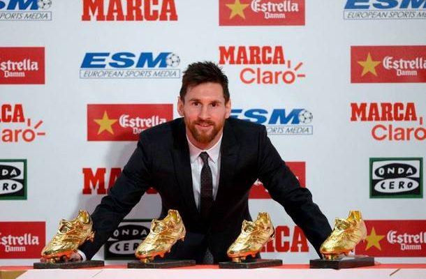 Lionel Messi, az FC Barcelona argentin labdarúgója negyedszer vette át pénteken az európai ligák legeredményesebb góllövőjének járó Aranycipőt.