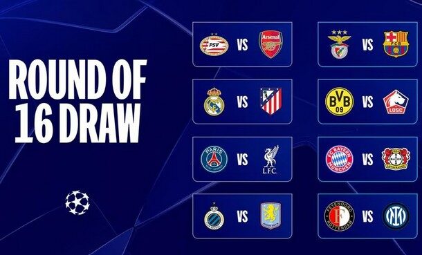 A rájátszás első körében a 2023-as győztes Manchester Cityt búcsúztató, címvédő Real Madridnak nem kell utaznia, ellenfele ugyanis a városi rivális Atlético Madrid lesz, míg a Bundesligában címvédő Bayer Leverkusen a Bayern Münchennel csatázik majd a nyolc közé jutásért. A BL-ben 19 év után szerepel újra két holland együttes a legjobb 16 között, közülük a PSV Eindhoven az Arsenalt, a Feyenoord pedig az olasz bajnoki címvédő Internazionalét kapta ellenfélnek. Az alapszakaszt második helyen záró FC Barcelona a portugál Benficával találkozik a nyolcaddöntőben, a párharc továbbjutója pedig vagy a Borussia Dortmunddal vagy a francia Lille-lel játszik a legjobb nyolc között.